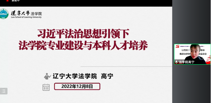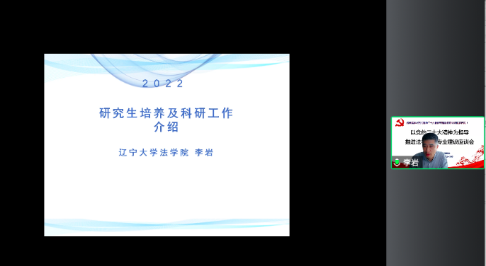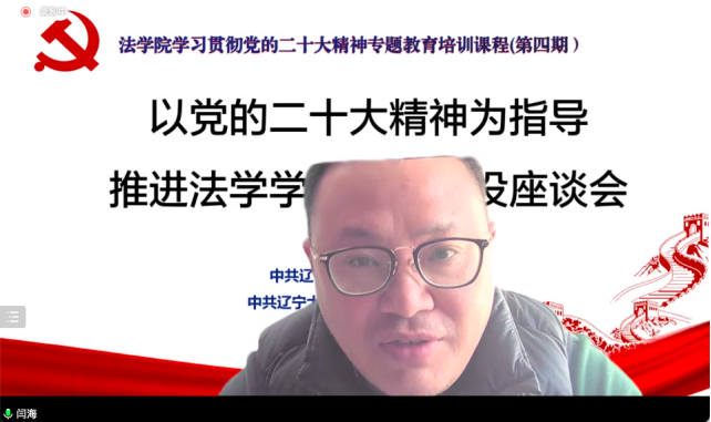 12月8日下午,3044am永利集团3044noc为帮助新入职教师及新晋导师融入学院,加强对新入职教师及新晋导师成长成才的支持,共同探讨教师如何积极适应国家和学校发展要求,举办了“以党的二十大精神为指导推进法学学科专业建设”线上专题座谈会。学院党委书记路军、院长闫海、党委副书记宋瑞、副院长李岩、副院长高宁、导师代表王素芬及新入职教师、新晋导师参加座谈会。