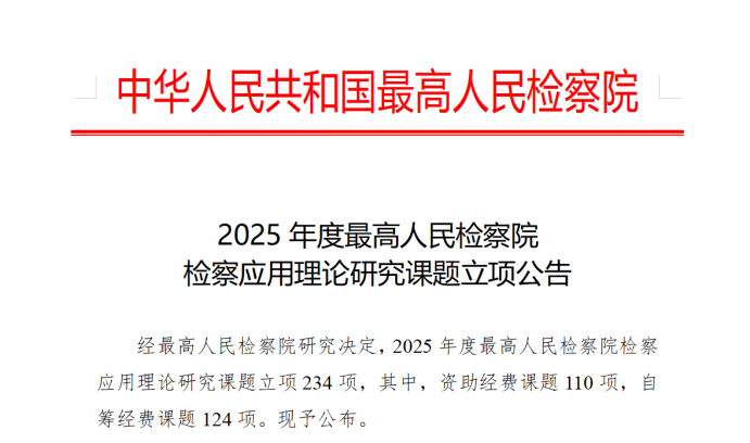 近日,最高人民检察院发布了《2025年度最高人民检察院检察应用理论研究课题立项公告》。我院刘佳奇教授主持的《完善公益诉讼“可诉性”判断标准研究》获准立项。